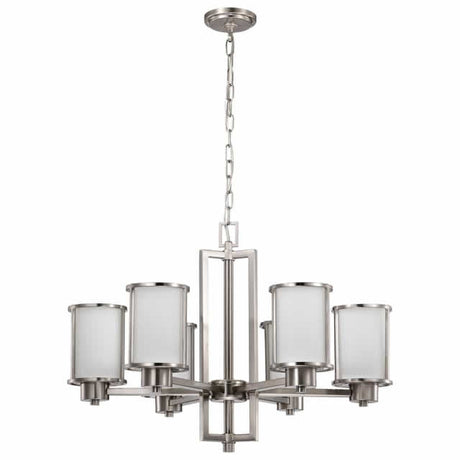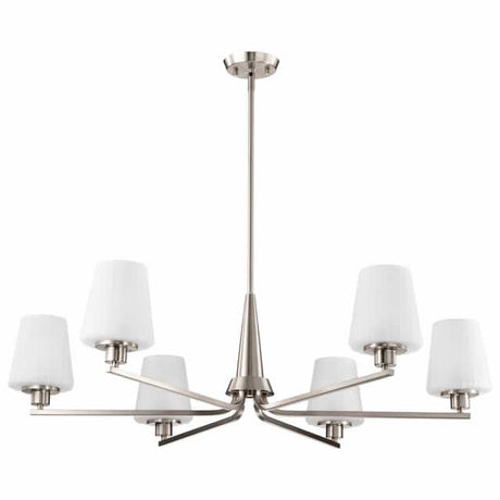 Nuvo 60-8226 Lune 6 Light Chandelier Etched White Glass Brushed Nickel Finish 120V