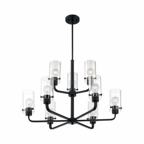 Nuvo 60-7279 Sommerset 9 Light Chandelier Clear Glass Matte Black Finish 120V