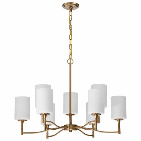 Nuvo 60-8209 Liam 9 Light Chandelier White Opal Glass Burnished Brass Finish 120V