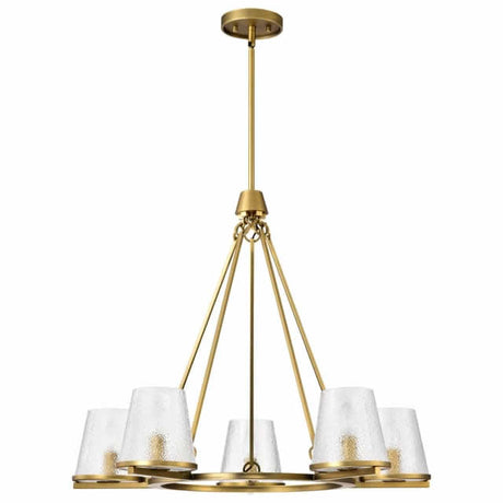 Nuvo 60-8268 Valentine 5 Light Chandelier Hammer Glass Vintage Brass Finish 120V