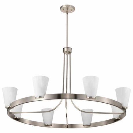 Nuvo 60-8739 Royale 8 Light Chandelier Ribbed White Glass Brushed Nickel Finish 120V