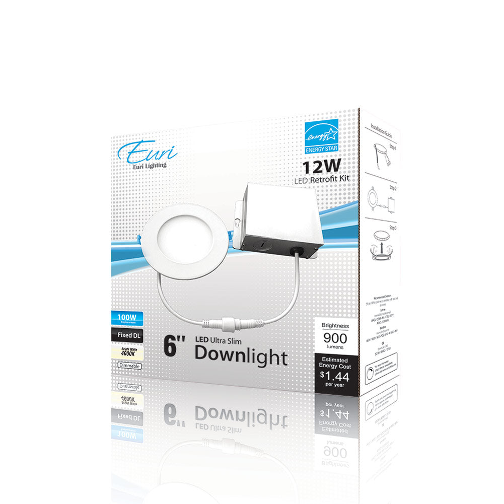 Euri Lighting DLC6S-2040e 12 Watt LED 6" Ultra Slim Round Downlight 4000K 120V