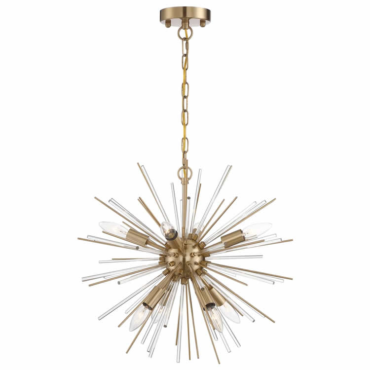Nuvo 60-6994 Cirrus 8 Light Chandelier Glass Rods Vintage Brass Finish 120V